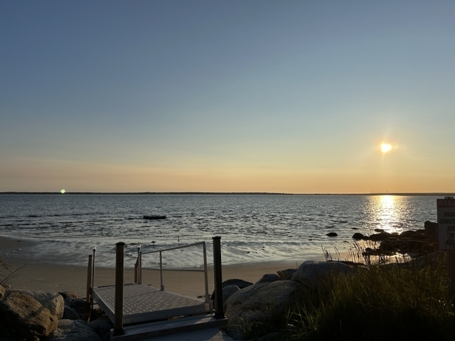 From Exit 29 or 30 to Barrington West, continue on Villagedale Road to Old Villagedale Loop Road on right past Sandhills Beach Park, second entry continue to Sebim Beach Resort, through gate, continue straight on Water Street to shore to Bayview Avenue, ppty on right, see sign
